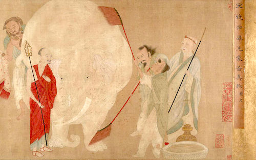 You can find other examples of bricolage in folktales and other stories about the completion of a difficult task or new inventions. For example, there is a Chinese folk tale that involves weighing an elephant. In days long past, the Emperor was given an elephant for a gift. All the people were amazed by the size of the animal and the Emperor decided that he needed to know how much the elephant weighed. It was too big and heavy for any of the available scales. Someone suggested that he kill it and cut it into manageable pieces but the Emperor didn’t want to harm the elephant.
